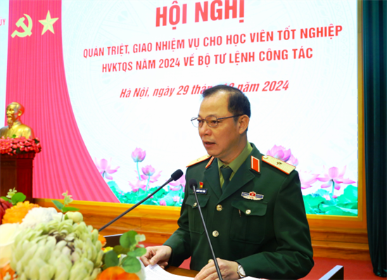 | Maj. Gen. Nguyen Minh Thang briefs the new graduates deployed to Command 86 |