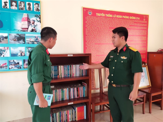 | Officers and soldiers study legal topics at Ho Chi Minh hall |