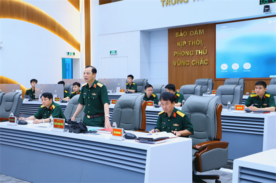| Thiếu tướng Nguyễn Minh Thắng kiểm tra nhiệm vụ trực sẵn sàng chiến đấu tại Trung tâm điều hành Bộ Tư lệnh 86. |