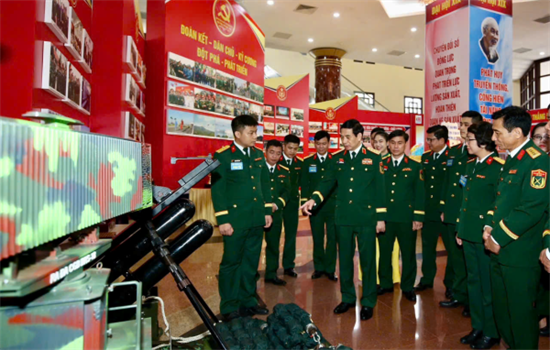 | Đại tướng Phan Văn Giang, Bộ trưởng Bộ Quốc phòng tham quan gian trưng bày sản phẩm nghiên cứu của Viện tại Lễ kỷ niệm 80 năm Ngày truyền thống Bộ Tổng Tham mưu. |