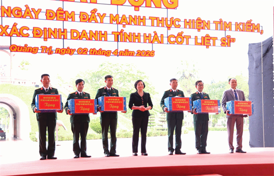 | Phó Thủ tướng Phạm Thị Thanh Trà tặng quà các Đội tìm kiếm, quy tập hài cốt liệt sĩ tại Lễ phát động “Chiến dịch 500 ngày đêm đẩy mạnh thực hiện tìm kiếm, quy tập và xác định danh tính hài cốt liệt sĩ”. |