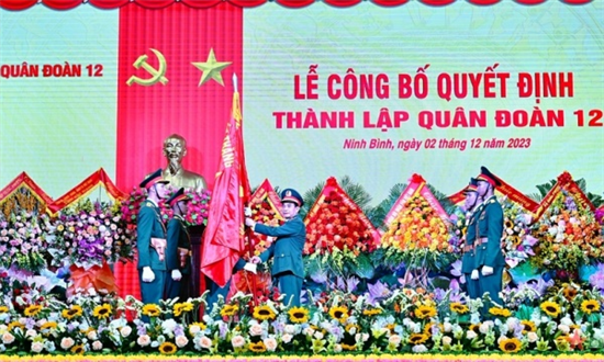 | Đại tướng Phan Văn Giang trao Quân kỳ Quyết thắng cho Quân đoàn 12 - Quân đoàn tinh, gọn, mạnh, tiến lên hiện đại đầu tiên của Quân đội nhân dân Việt Nam. Ảnh: qdnd.vn |