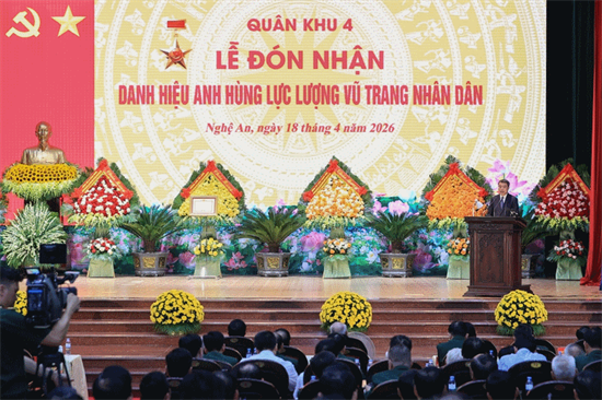 Thủ tướng nêu rõ, với những chiến công, thành tích đạt được trong hơn 80 năm qua, lực lượng vũ trang Quân khu 4 đã vinh dự được Đảng, Nhà nước tặng thưởng nhiều huân chương và phần thưởng cao quý. Để ghi nhận thành tích đặc biệt xuất sắc đột xuất trong huấn luyện, sẵn sàng chiến đấu, xây dựng Quân đội nhân dân, củng cố quốc phòng, góp phần vào sự nghiệp xây dựng chủ nghĩa xã hội và bảo vệ Tổ quốc, Đảng, Nhà nước đã quyết định phong tặng danh hiệu cao quý Anh hùng Lực lượng vũ trang nhân dân cho Quân khu 4.