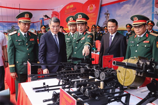 | Thủ tướng Lê Minh Hưng cùng các đại biểu tham quan trưng bày sáng kiến cải tiến kỹ thuật của Quân khu 4. Ảnh: VGP/Nhật Bắc |