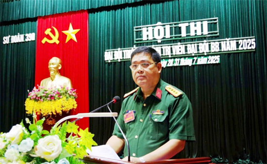 | Chỉ huy Sư đoàn phát biểu khai mạc Hội thi đại đội trưởng, chính trị viên đại đội bộ binh năm 2025. |