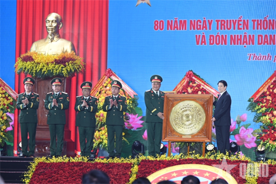 Thay mặt lãnh đạo Đảng, Nhà nước, Chủ tịch nước chúc mừng những chiến công, thành tích và đóng góp to lớn của LLVT Quân khu 7 đối với sự nghiệp cách mạng vẻ vang của Đảng, của dân tộc trong suốt 80 năm qua.