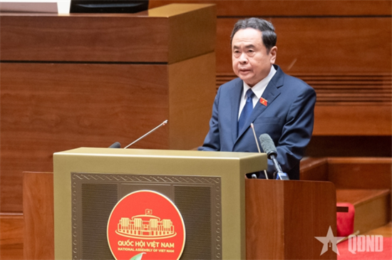 | Chủ tịch Quốc hội Trần Thanh Mẫn phát biểu bế mạc hội nghị. Ảnh: PHẠM THẮNG |