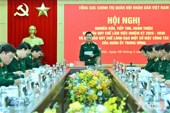 Sáng 08/4, tại Hà Nội, Thượng tướng Đỗ Xuân Tụng, Ủy viên Trung ương Đảng, Phó Chủ nhiệm Tổng cục Chính trị chủ trì Hội nghị nghiên cứu, tiếp thu, hoàn thiện dự thảo Quy chế làm việc nhiệm kỳ 2025 - 2030 và dự thảo Quy chế lãnh đạo một số mặt công tác của Quân ủy Trung ương.