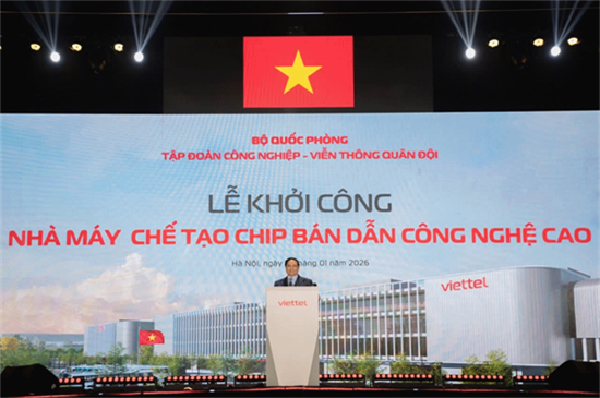 军队工业电信集团在越南第一个半导体芯片制造工厂动工仪式(图自VOV)