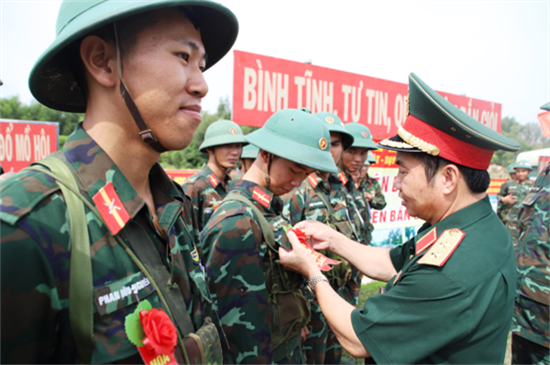 | 阮春山中将为毕业考核射击成绩优异的学员献花 |