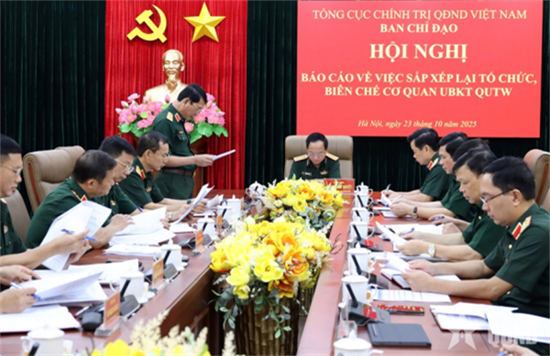 | 郑文决大将主持召开会议,关于重组中央军委检查委员会机关组织与编制的汇报。图自越南人民军队报 |