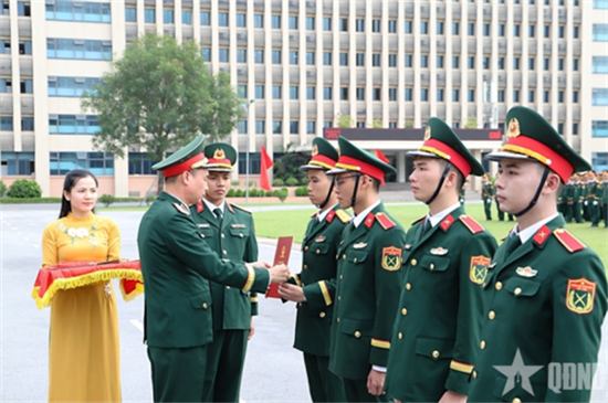 | 学校领导向2025届学员颁发毕业证书。图自越南人民军队报 |