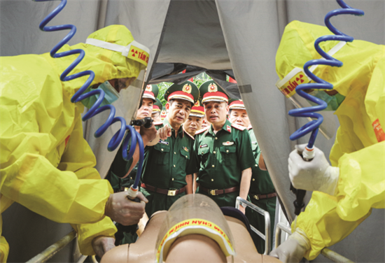 坚持“前线普及、后方专深”、“就地医疗、就地用药”的方针,军医系统注重传统医疗与现代医疗相结合,强化疾病预防工作,有效保障全军健康率始终保持在98.5%以上。特别是在新冠肺炎疫情期间,近2.3万人次军医人员奔赴抗疫一线,累计收治患者超过3万人。同时,军医系统充分发挥骨干和突击力量作用,积极落实党关于军民融合医疗的战略方针,参与基层医疗体系建设,开展为民诊疗、抢险救灾、灾后恢复等工作,充分展现新时代“胡伯伯部队”的优良品质,夯实基层政治基础和“民心阵地”。越南军医还积极参与国际人道主义援助和联合国维和行动,有效传播了越南国家形象和军队良好风貌。